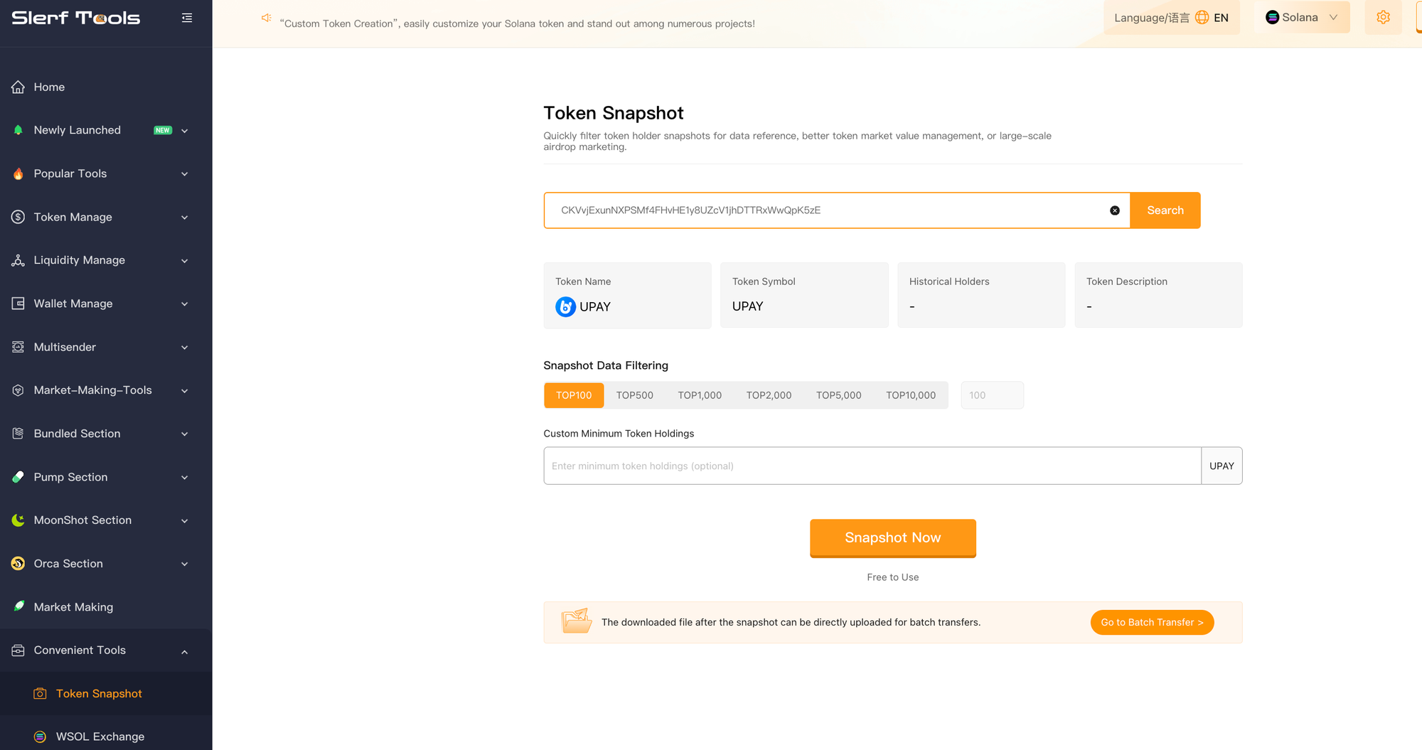 Visit the SlerfTools Platform and navigate to the SPL Token Snapshot module.